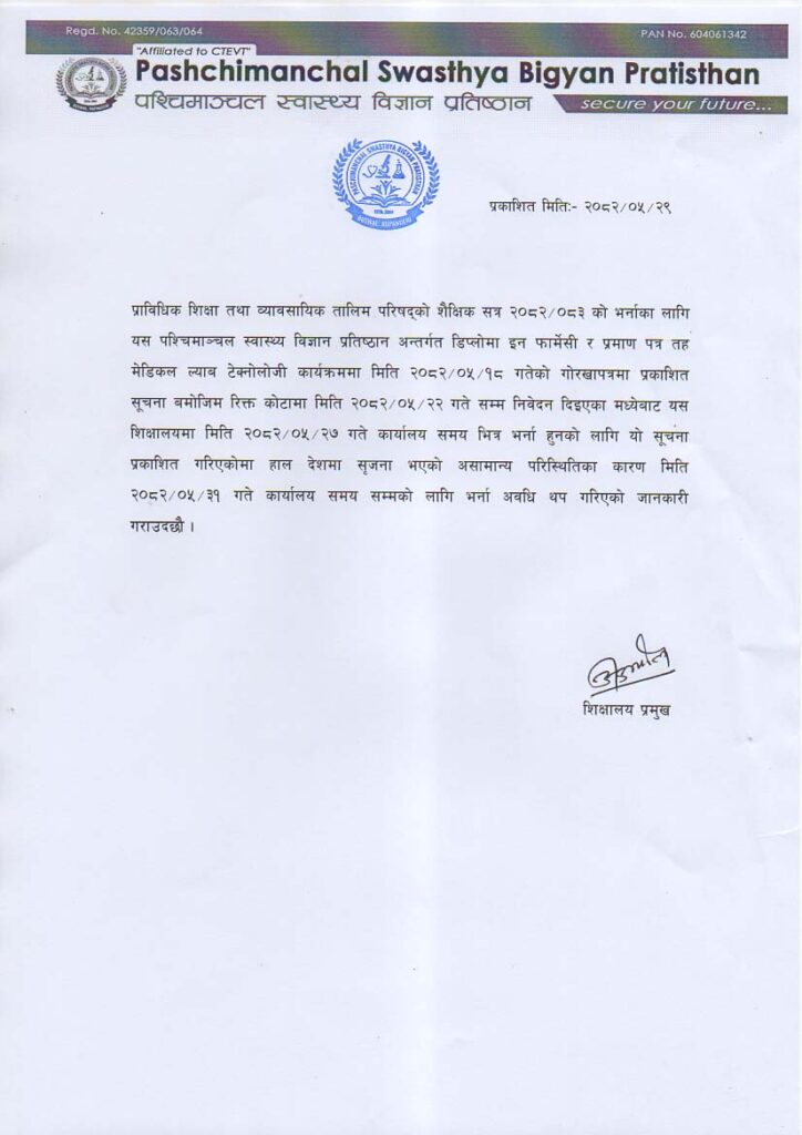 प्रवेश परीक्षाा उत्तिर्ण भएकाहरुलाई भर्ना सम्बन्धी सूचना Leave a Comment / September 19, 2022 October 13, 2022